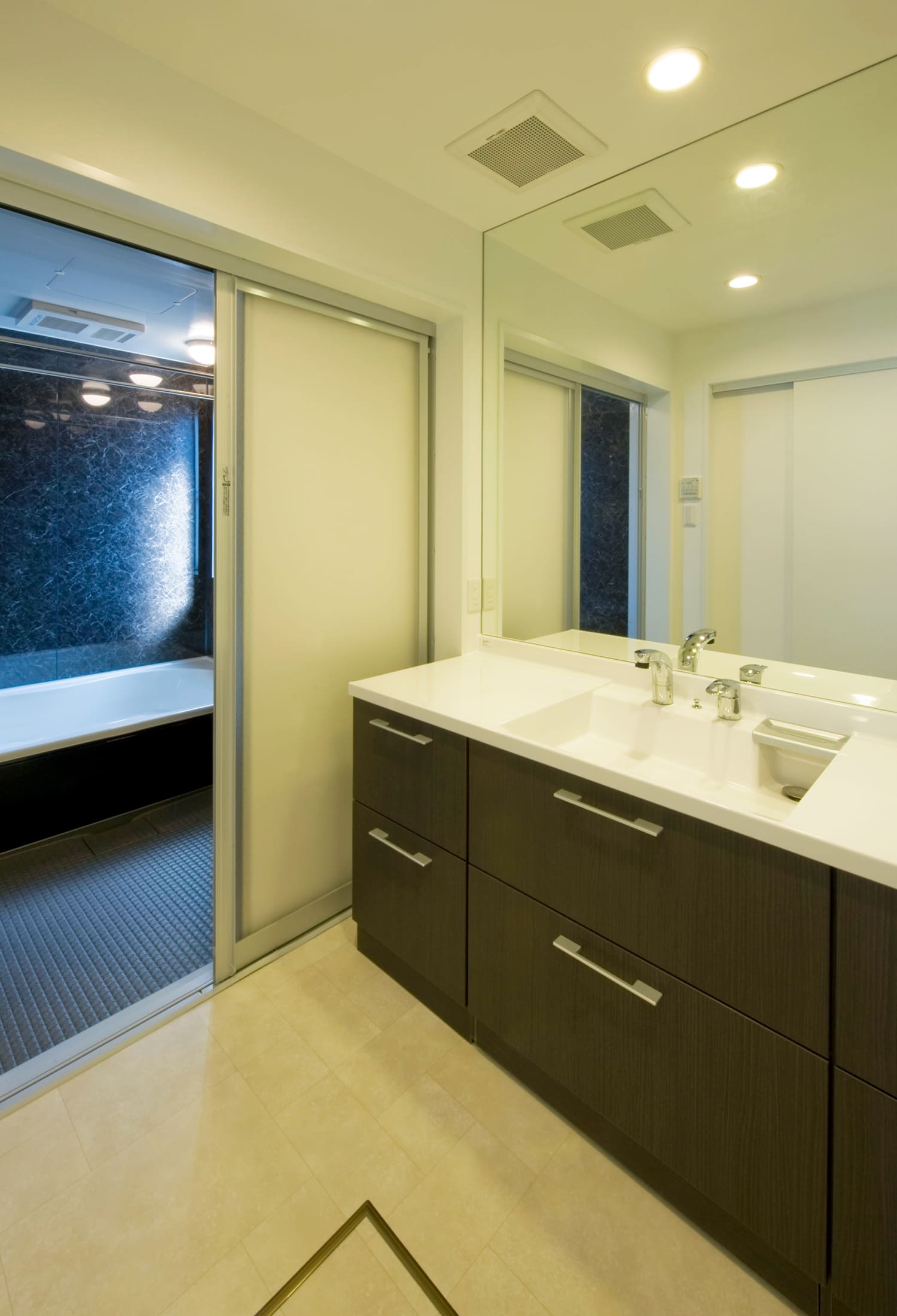 柔らかな光が壁を美しく伝い、空間に驚くほどの奥行きと、ホテルライクな落ち着きをもたらします。