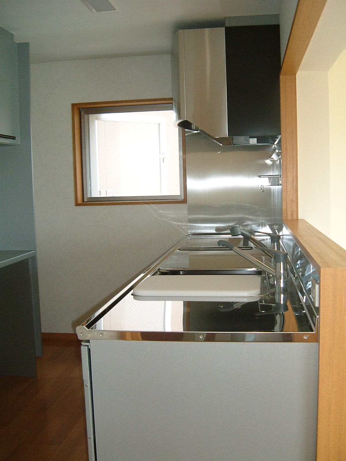 リビングダイニングと隣接するキッチンは、耐久性と清掃性に優れたステンレス製のカウンターを採用。